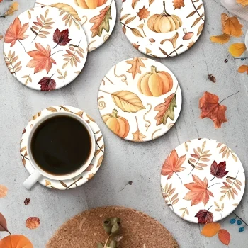 Golden Pumpkin Leaf Wooden Coasters Set – Autumn Harvest Home Décor (6pcs)