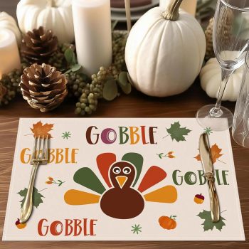 Thanksgiving Turkey Placemats with Autumn Maple Leaves – Washable Table Mats