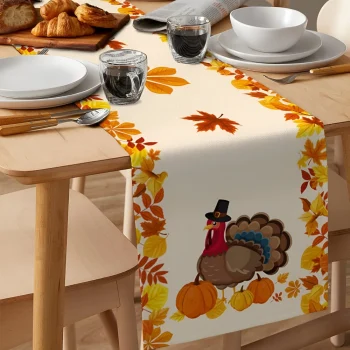 Fall Thanksgiving Table Runner with Turkey & Maple Leaves – Autumn Harvest Décor