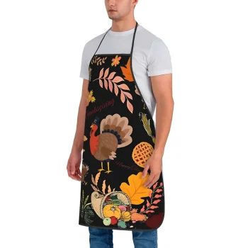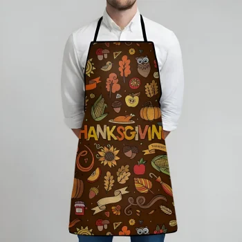 Thanksgiving Turkey & Autumn Leaves Adjustable Kitchen Apron – Unisex Heavy-Duty Cooking Wear