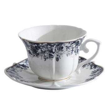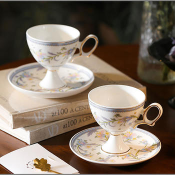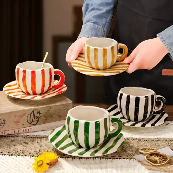 European Ceramic Striped Coffee Cup & Saucer – Elegant Camellia Tea Mug