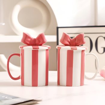 Elegant European Red Stripe Ceramic Coffee Mug with Lid – Creative Tea & Coffee Cup