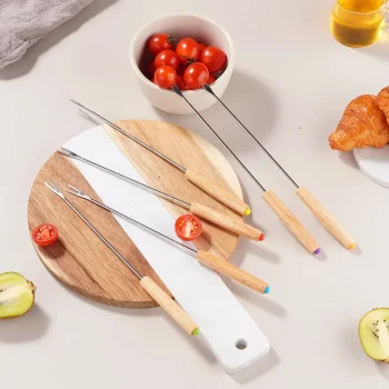 12Pcs Stainless Steel Fondue Fork Set with Wood Handles – Heat Resistant Dessert & Hot Pot Tools