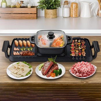 2-in-1 Electric Smokeless BBQ Grill & Hot Pot Combo 2400W Nonstick Indoor Cooker