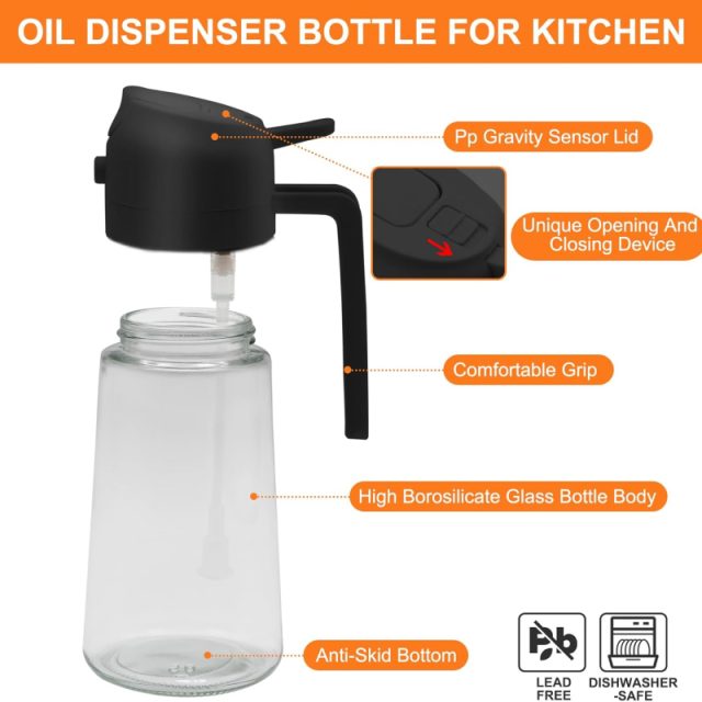 This oil dispenser isn’t just a kitchen gadget – it’s your secret to cleaner, healthier, and more precise cooking. The innovative design combines a smooth spray head for even misting and a controlled pour spout for easy drizzling. The glass body adds a touch of sophistication while letting you see exactly how much oil you have left. Available in 16oz (470ml) and 20oz (600ml) sizes, it adapts perfectly to your kitchen needs.