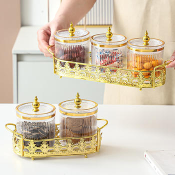 Transparent Gold-Striped Seasoning & Sugar Storage Jar