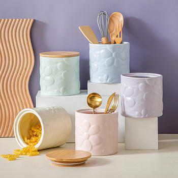 1200ML Ceramic Food Storage Jar with Wooden Lid – Airtight Kitchen Container