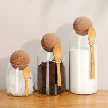 Glass Coffee & Tea Storage Jar with Spoon – Fresh-Keeping 8.5oz Container