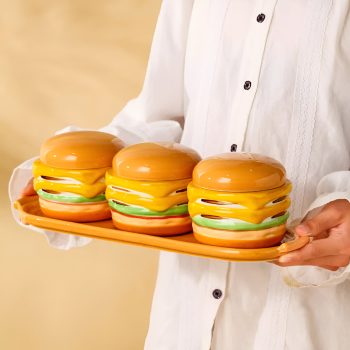Cute Hamburger Ceramic Spice Jar with Spoon