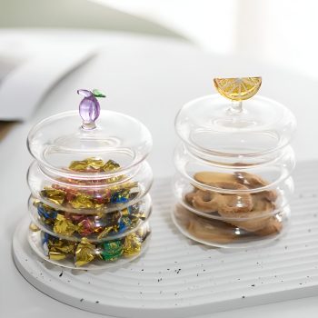 Luxury Glass Candy Jar with Three-Dimensional Fruit Lid