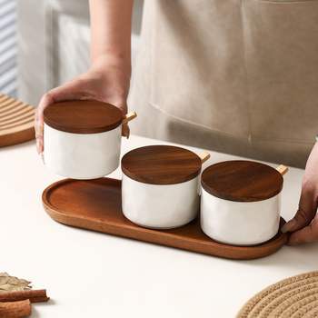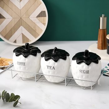 Creative Ceramic Seasoning Jar Set – 3-Piece Kitchen Spice & Condiment Organizer