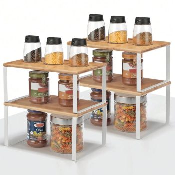 Stackable & Expandable Kitchen Shelf Organizers, Set of 4 – Metal & Wood