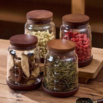 Modern Black Walnut Glass Tea Caddy – Airtight Storage Jar