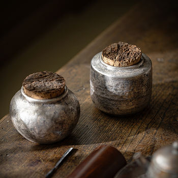 Silver Ceramic Tea Pot with Cork Storage Box – Chinese Decorative Tea Set