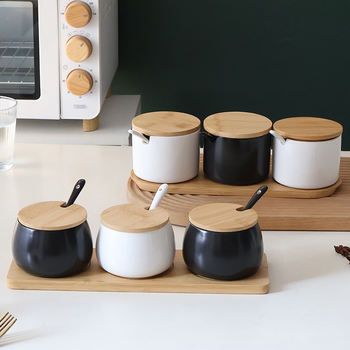 Eco-Friendly Ceramic Seasoning Jar with Bamboo Lid & Spoon