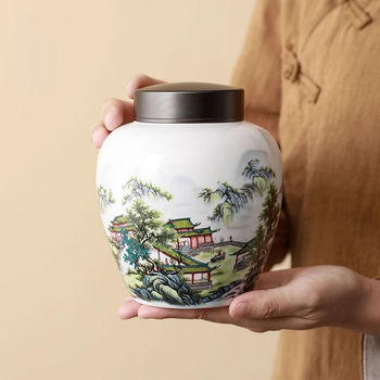 1000ml Nordic Bamboo Forest Ceramic Tea Jar with Double-Seal Lid
