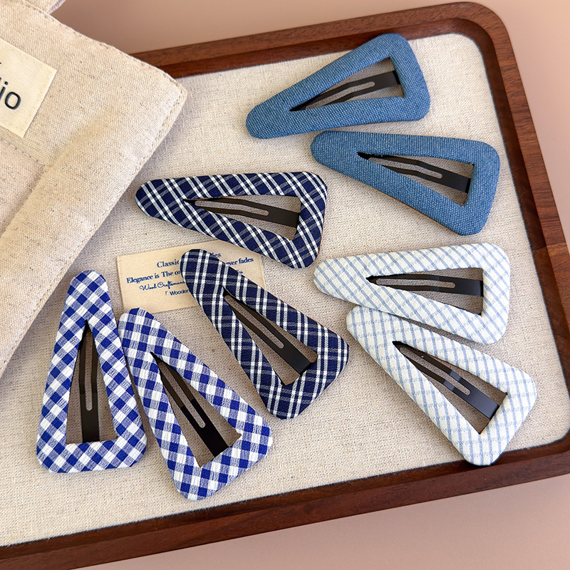 Crafted with care, these clips are more than just adorable – they’re practical too. Made from durable materials and designed to be lightweight, they won’t tug or pull on your hair. The triangle shape offers a fresh twist on classic styles, while the blue plaid pattern adds a playful yet elegant pop of color.
