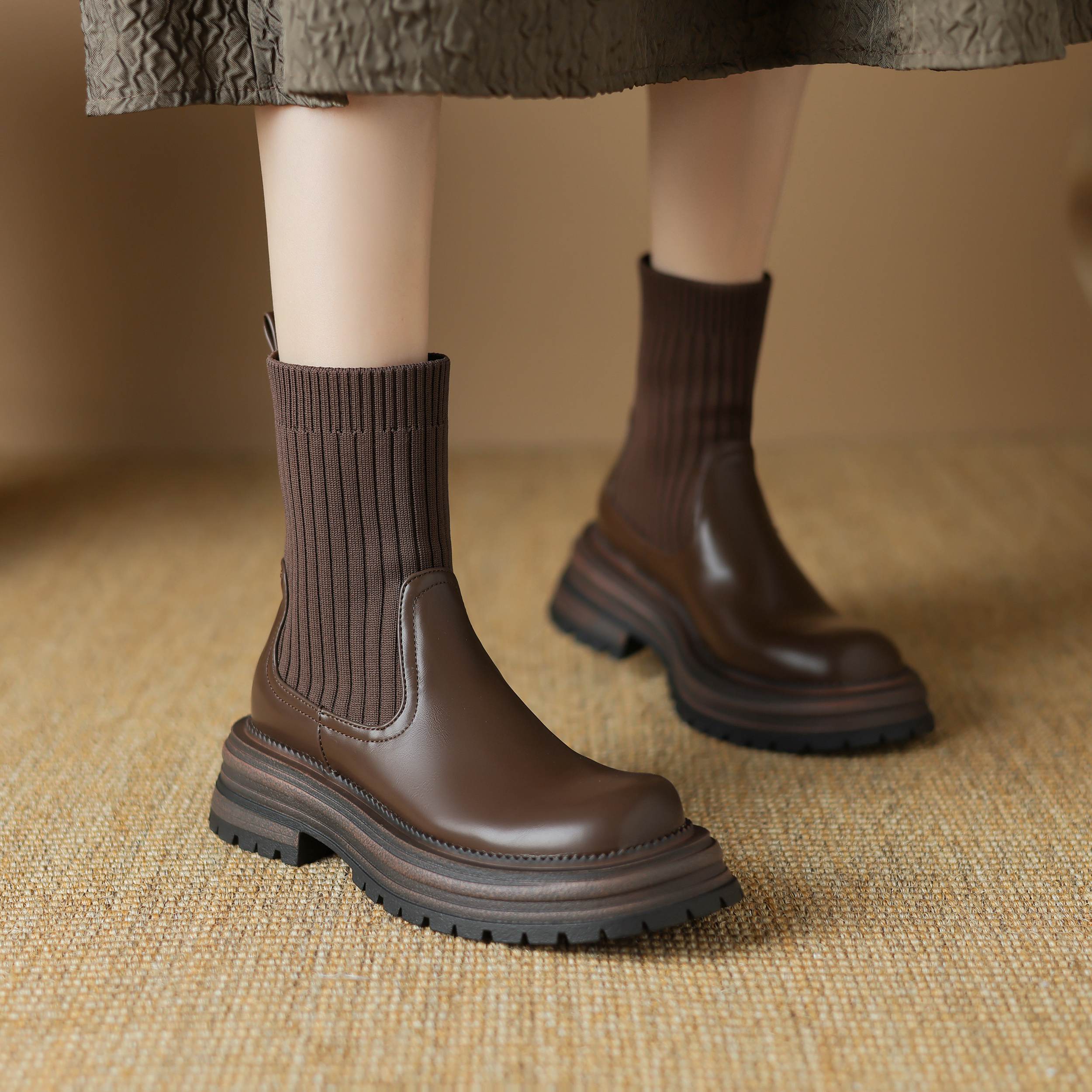 Perfect for daily wear, weekend outings, casual dates, or city strolls, these boots adapt effortlessly to your lifestyle. Slip them on with confidence and enjoy the balance of fashion and function. The elastic knit detail allows for a snug fit, ensuring your feet stay cozy without feeling restricted.