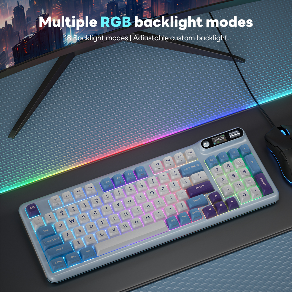 Wireless RGB Mechanical Keyboard with TFT Screen & Hot-Swap Gasket Design