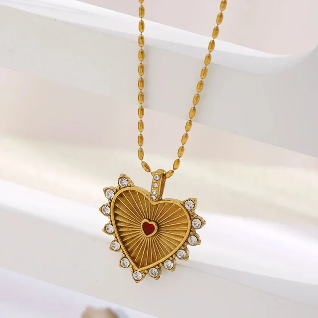 Celebrate love and elegance with this stunning heart-shaped zircon pendant necklace. Designed to add a touch of romance and sophistication to your look, this necklace is the perfect accessory for any occasion. The pendant, beautifully crafted from high-quality zircon, is set in a durable 316L stainless steel base, ensuring long-lasting shine and wear. Finished with a lustrous 18K gold plating, this necklace combines charm and style in a way that will make you stand out.