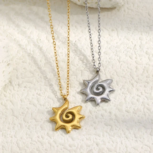 The Spiral Sun Shaped Pendant Necklace is not just a piece of jewelry—it’s a reflection of personal style and a statement of confidence. The unique spiral sun design symbolizes growth and renewal, making this necklace a meaningful addition to any jewelry collection. Its high-quality stainless steel and 18K gold plating ensure that it remains a long-lasting favorite, while the hypoallergenic and waterproof features make it practical and comfortable for daily wear.