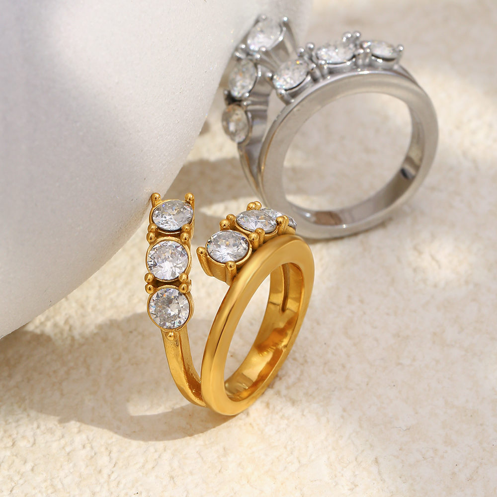 This ring isn’t just about looks; it’s about making a statement. The double-layer design and sparkling zircon stones add an extra touch of sophistication, while the hypoallergenic stainless steel ensures comfort all day long. Whether you’re pairing it with a tailored outfit for work or wearing it for a night out with friends, this ring will effortlessly complement your look.