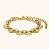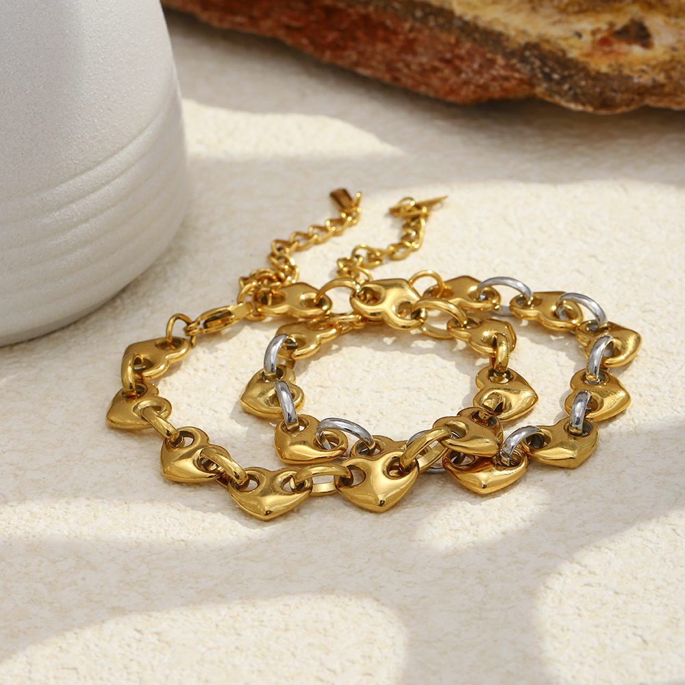 Crafted from durable 316L stainless steel and plated with luxurious 18K gold, this bracelet offers both lasting beauty and resistance to wear and tear. The unique heart-shaped love ring splicing design brings a touch of romance and sophistication, making it a perfect accessory for both work and play. The hypoallergenic properties ensure that it’s safe for even the most sensitive skin, while the waterproof feature ensures it stays in pristine condition regardless of weather or moisture exposure.