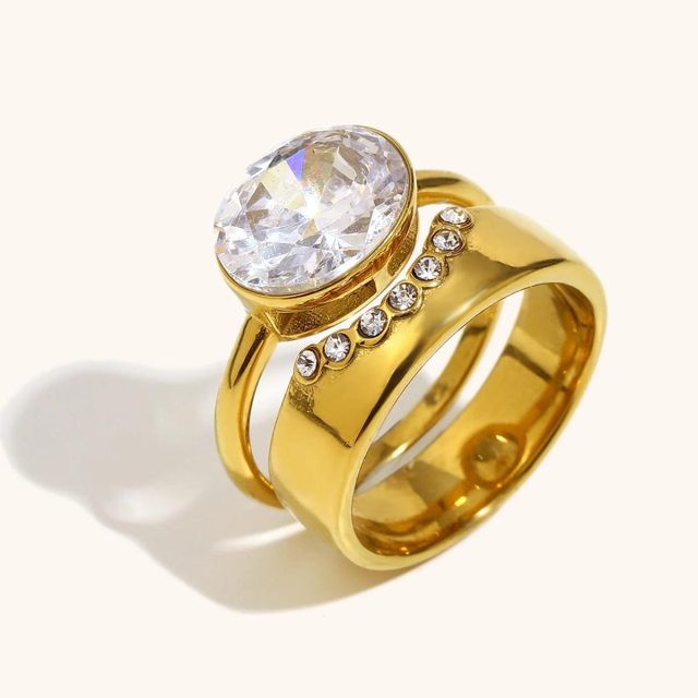 Make a confident style statement with this beautifully designed oval zircon double band ring. Crafted to look luxurious yet feel effortless, this stacked ring brings together modern structure and classic sparkle. The sleek oval-cut zircon catches the light from every angle, while the layered band design creates depth and dimension on your hand. It’s bold without being loud, refined without feeling delicate, and designed to elevate your everyday look.