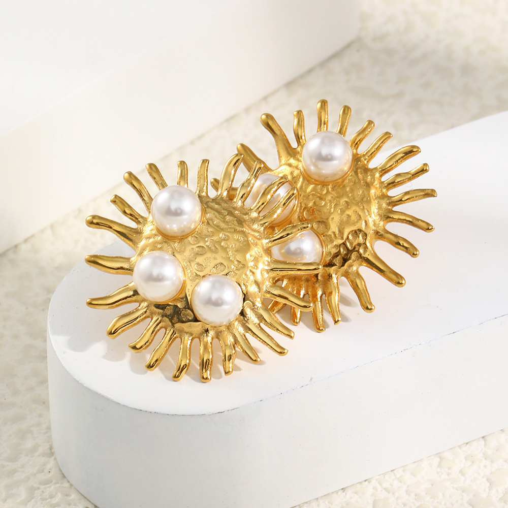 Elevate your style with these stunning Retro Sun Imitation Pearl Earrings. Crafted from premium 316L stainless steel and plated with a luxurious 18K gold finish, these earrings exude sophistication while offering the durability you need. Perfect for adding a touch of timeless elegance to your daily ensemble, they are a must-have accessory for any woman who loves to shine.