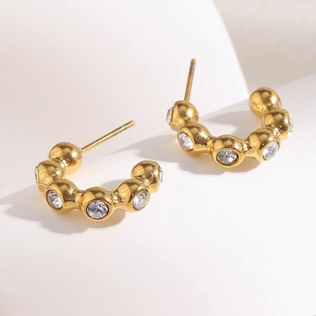 Crafted from high-quality stainless steel and finished with a rich gold plating, they offer a polished appearance that lasts. The carefully set zircon stone reflects light beautifully, giving you the look of fine jewelry in a versatile, easy-to-wear design. Lightweight and comfortable, they are made for all-day wear with no irritation.