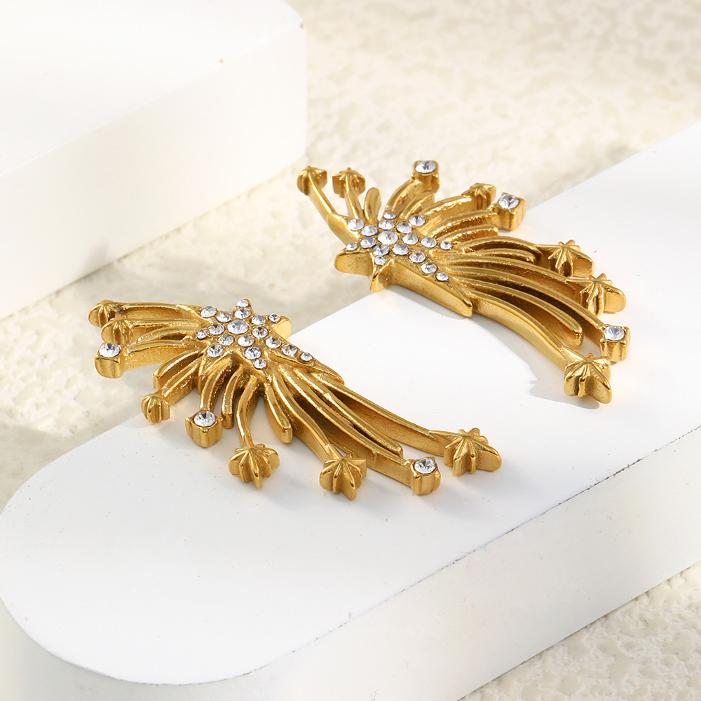 Transform your look with these stunning Shining Zircon Wings Shaped Earrings. Crafted from premium stainless steel and plated with a luxurious 18K gold finish, these earrings are designed to make a statement. Their elegant wing design adorned with sparkling zircon stones is sure to catch the light, adding a touch of sophistication to any outfit. Whether you’re dressing up for a special occasion or adding a chic accessory to your everyday wear, these earrings are the perfect addition to your jewelry collection.