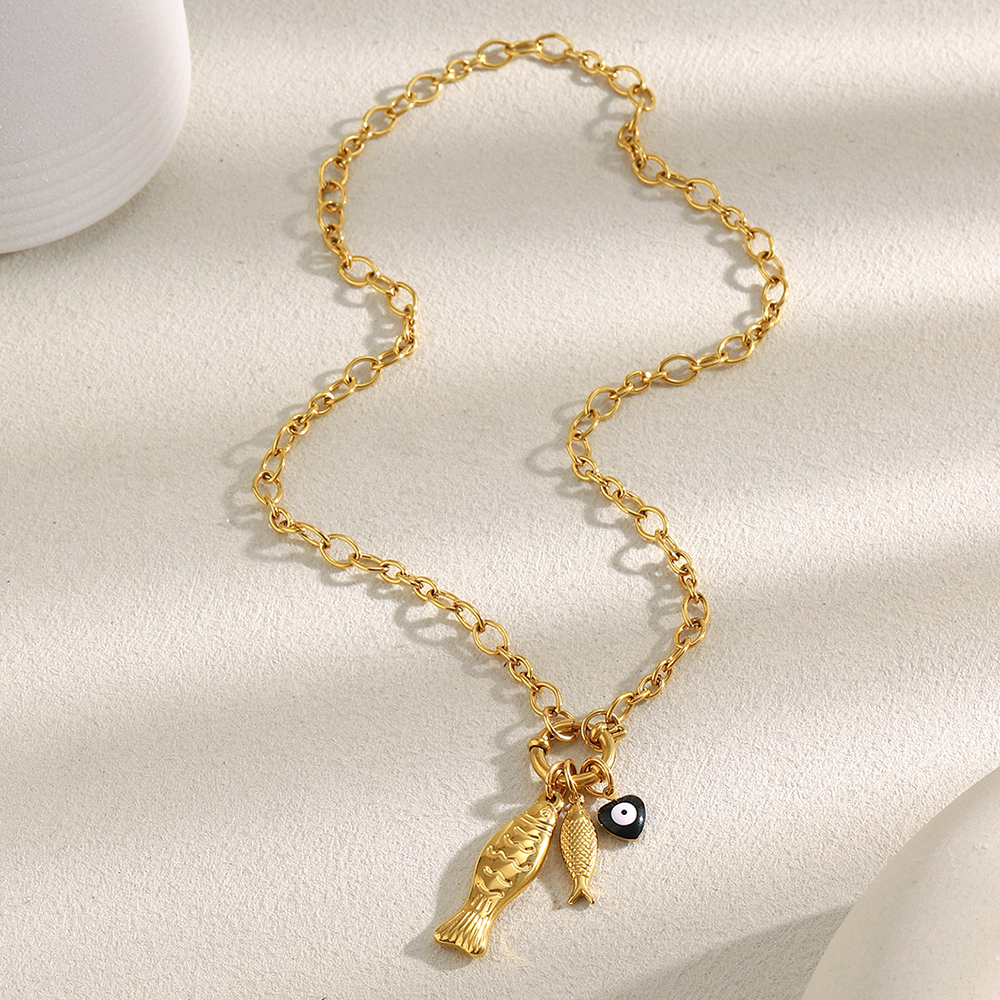 This refined fish drop pendant necklace is designed to add effortless elegance to your everyday and special looks. The delicate fish-shaped pendant features a smooth, polished finish that catches the light beautifully, creating a subtle yet eye-catching glow around your neckline. Crafted for modern women who appreciate meaningful design, this necklace blends fashion with durability, making it a reliable favorite in your jewelry collection.