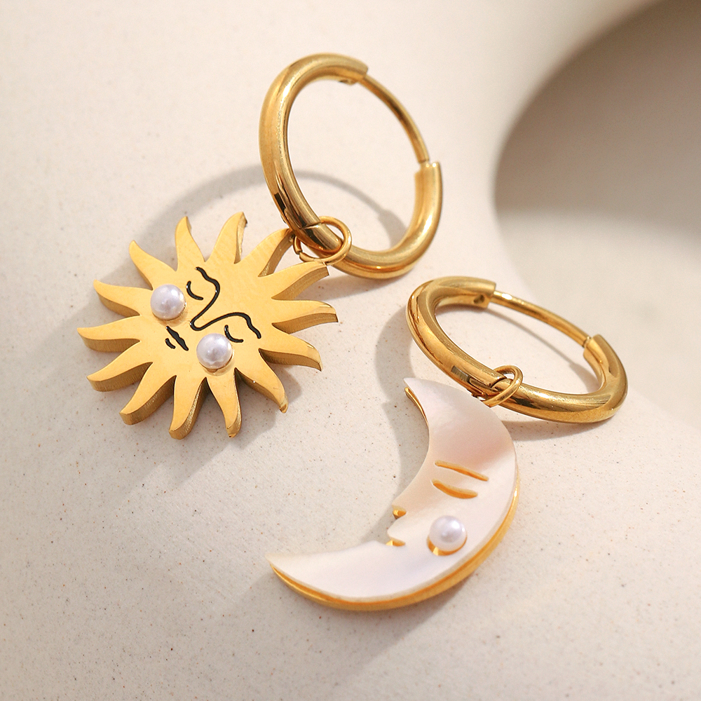 The unique sun and moon design symbolizes balance, femininity, and timeless beauty. Crafted from high-quality stainless steel and finished with rich gold plating, these earrings are made to shine without fading. The smooth pearl embellishment adds a gentle contrast, creating a trendy yet vintage-inspired style that feels modern and meaningful at the same time.