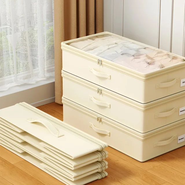 This spacious organizer is ideal for storing seasonal clothing, blankets, bed sheets, pillows, and more. Whether you slide it under your bed, place it in a closet, or stack it in a corner, it helps you maximize unused space while keeping your items neatly protected from dust and moisture. When not in use, simply fold it flat to save space.