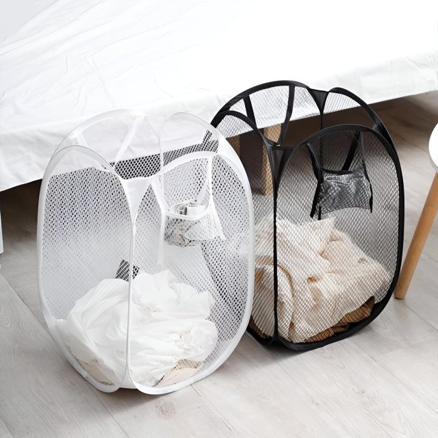 Made from high-quality polyester mesh and reinforced with a sturdy steel wire skeleton, this laundry basket is built to last. Its foldable design allows you to easily store it when not in use, saving valuable space in your home. The breathable mesh material promotes airflow, helping to reduce odors and keep your laundry fresh until it’s time to wash. With two stylish color options—classic black and modern white—you can choose the one that best complements your decor.