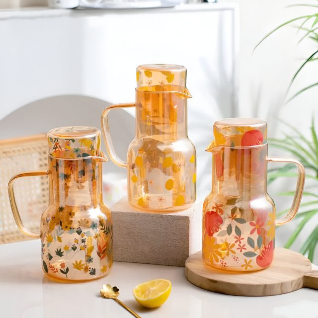 Bring beauty and practicality to your kitchen with this Large-Capacity Floral Glass Kettle. Designed for both hot and cold beverages, this stunning pitcher combines a floral-inspired look with high durability. Whether you’re serving lemon water, iced tea, juice, or warm milk, this heat-resistant glass kettle is your go-to choice for everyday refreshment and elegant entertaining.