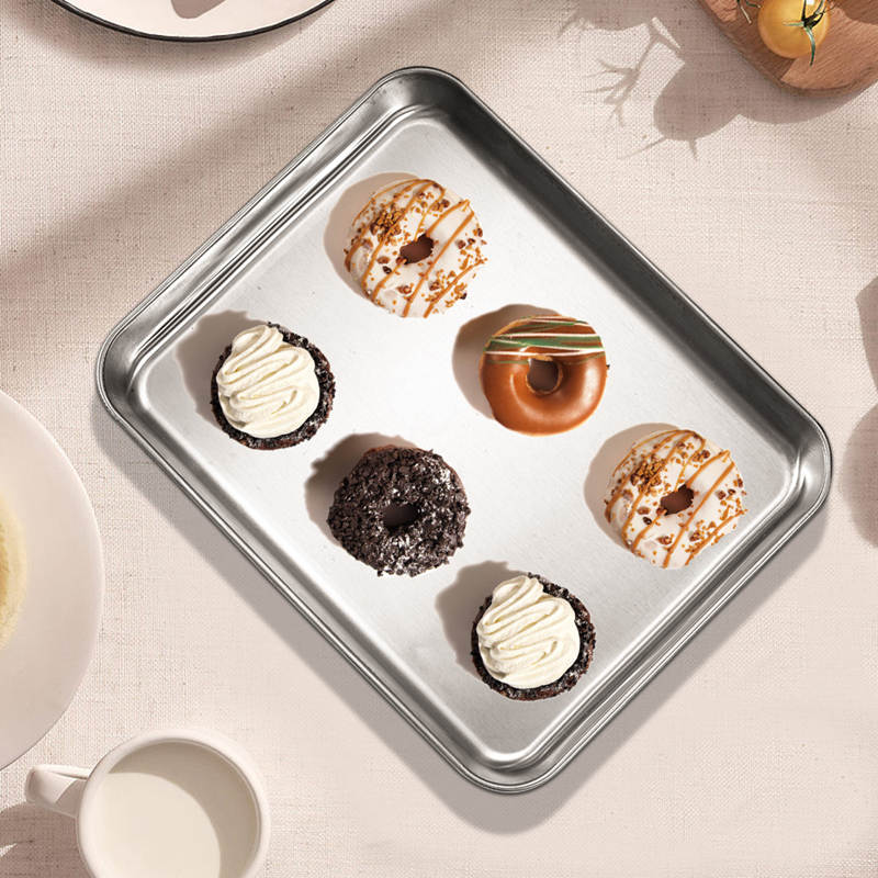 Made from premium 430 stainless steel, this baking tray is built to last. It’s completely non-toxic and free from chemical coatings, ensuring that no harmful substances ever touch your food. Unlike aluminum trays, it won’t leave metallic residue or alter the taste of your favorite dishes. Its sturdy build and moderate weight give it a solid feel that’s resistant to warping and corrosion — perfect for years of reliable use.