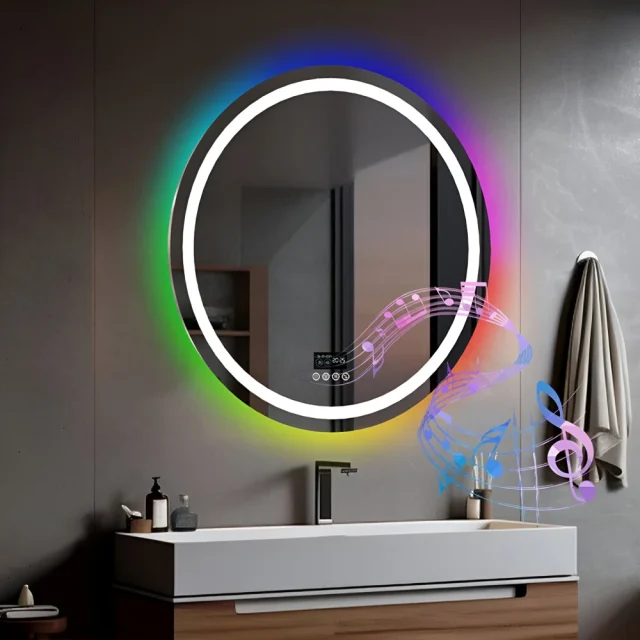 Enjoy a mirror that does more than reflect. This LED bathroom mirror comes equipped with a built-in Bluetooth speaker, allowing you to stream your favorite music, podcasts, or news hands-free. Its intelligent touch control panel lets you adjust brightness, color temperature, and lighting modes with ease. The anti-fog system ensures a crystal-clear reflection even after the steamiest showers, while the memory function saves your preferred settings for next time. With a display for time and temperature, it keeps you effortlessly on schedule every morning.