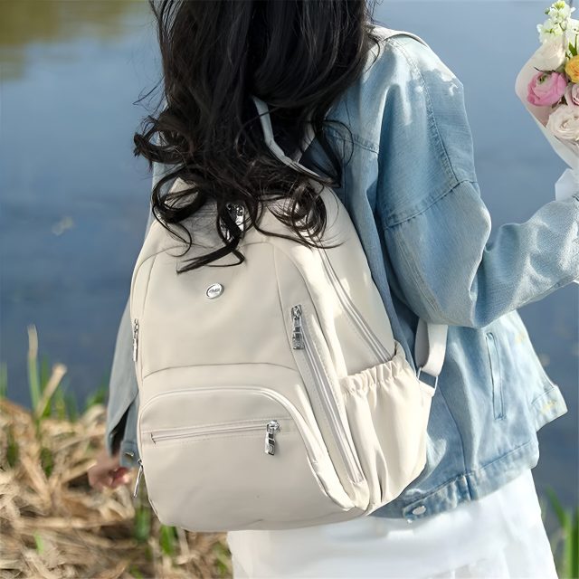 This sleek, lightweight daypack is designed for women who want a balance of style, comfort, and space. Made from top-quality waterproof nylon, it keeps your essentials protected from light rain and busy daily life. The clean, solid-color look fits perfectly with casual outfits, Korean preppy styles, or everyday school wear. It’s simple, modern, and easy to match with anything in your wardrobe.