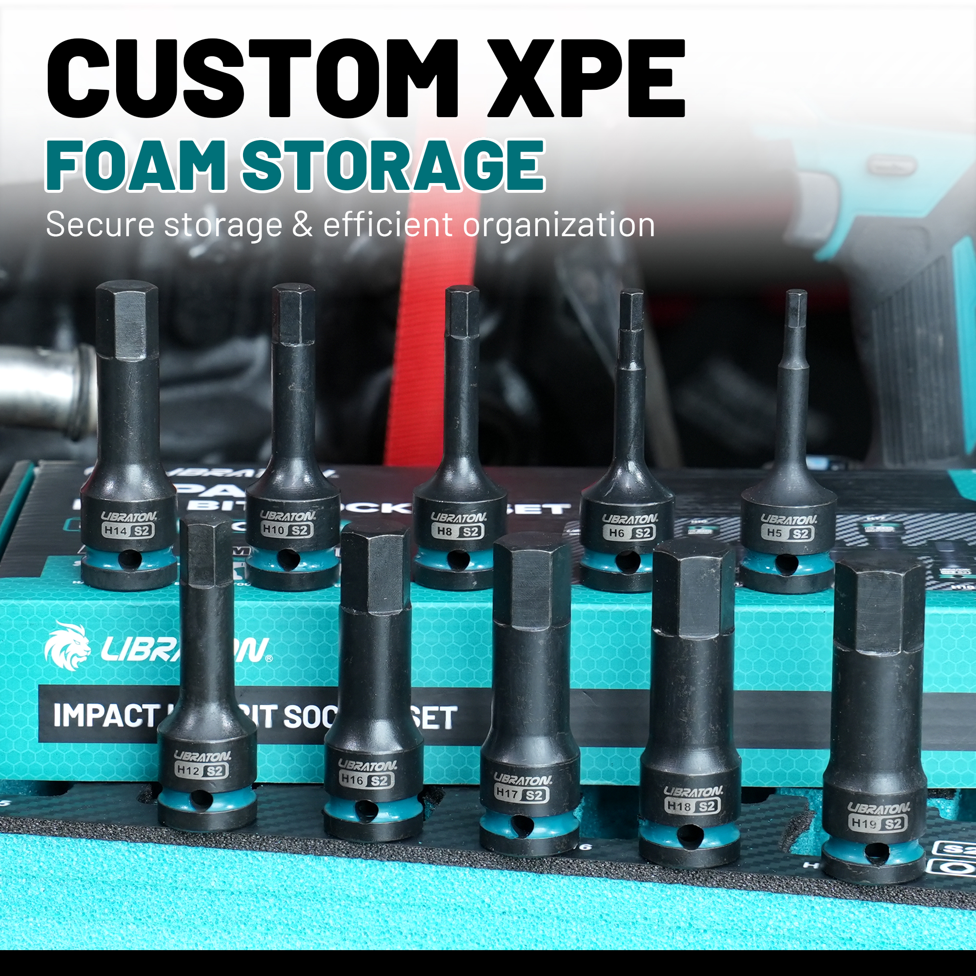 1/2-Inch Drive Impact Hex Bit Socket Set, 10-Piece High Torque with Case