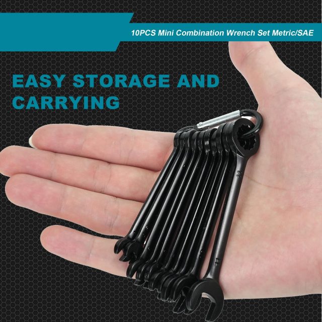 The mini size makes this set perfect for confined areas. Each wrench features an open end for quick adjustments and a 12-point box end for a secure grip on fasteners. A 15-degree offset improves hand clearance, allowing smoother movement and less strain on your fingers when space is limited.