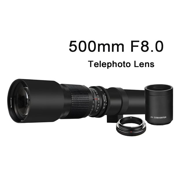 Every element of this lens is crafted to maximize your shooting experience. With multi-coated glass optics, a rotatable tripod mount for easy vertical or horizontal shooting, and a lightweight yet sturdy body, it’s built for both stability and convenience. The included 2X converter doubles your focal length to an incredible 1000mm, giving you unmatched versatility for long-distance photography. Manual focus control allows for artistic precision, letting you fine-tune every shot for the perfect frame.