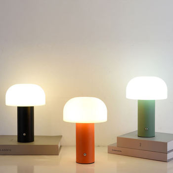LED Mushroom Touch Lamp – Tricolor USB Rechargeable Dimmable Light