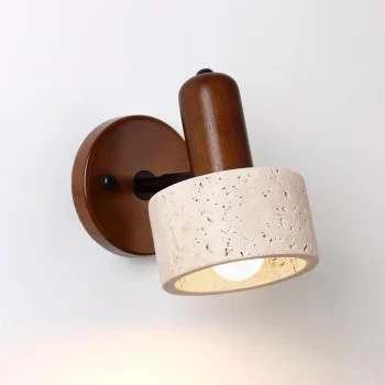 Yellow Travertine & Wood LED Wall Lamp – Modern Nordic Pull Chain Light