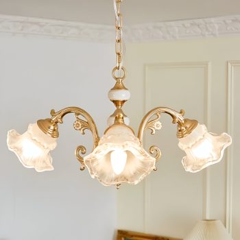 French Retro Copper Pendant Light with Elegant Glass Flower Shade