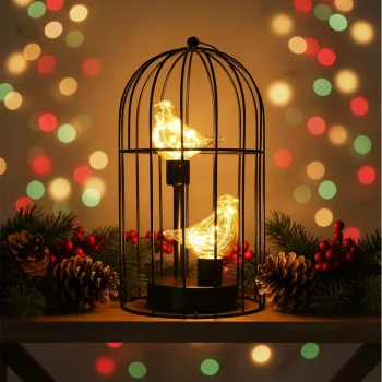 Birdcage Table Lamp with Warm White Fairy Lights – Battery Operated Decor