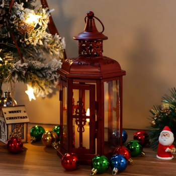 Vintage Metal & Glass Hanging Candle Lantern – 10 Inch Indoor Outdoor Decor