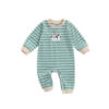 Dress your little one in cozy charm with this baby boy fall romper. Featuring classic stripes and a sweet dog embroidery, it’s the perfect mix of playful design and practical comfort. The soft cotton blend keeps your baby snug, while the round neckline and long sleeves provide extra warmth on cooler days. This full-length jumpsuit is made for crawling, cuddling, and picture-perfect moments.
