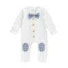 Baby Boys Long Sleeve Plaid Jumpsuit with Bow Tie
