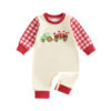 This adorable baby girl romper is designed to make every Valentine’s Day moment extra special. With charming truck and heart embroidery paired with a classic plaid pattern, this jumpsuit blends festive sweetness with everyday comfort. The long sleeves and round neckline create a cozy, gentle feel that’s perfect for your little one’s delicate skin. Whether it’s for cuddles at home or a cute holiday photo, this romper brings warmth, charm, and style together effortlessly.